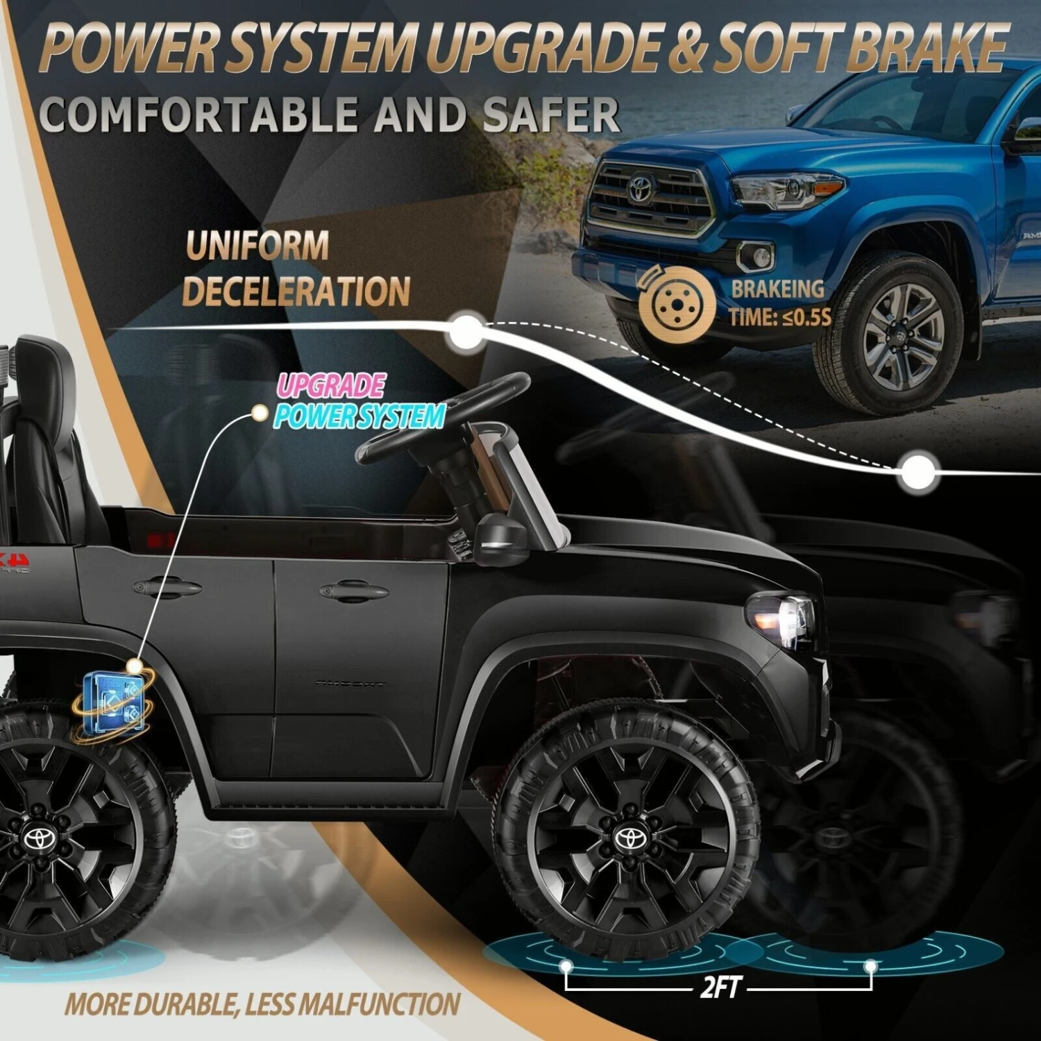 12V Ride-on Car: With adjustable speed and direction controls, your kids can step on the foot pedal, your child can have full control of their driving experience. The rear of the car features a spacious storage compartment for your child’s essentials and toys.