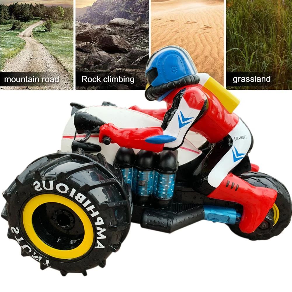 Functions: 360 degree flip,amphibious stunt,motor racing, light