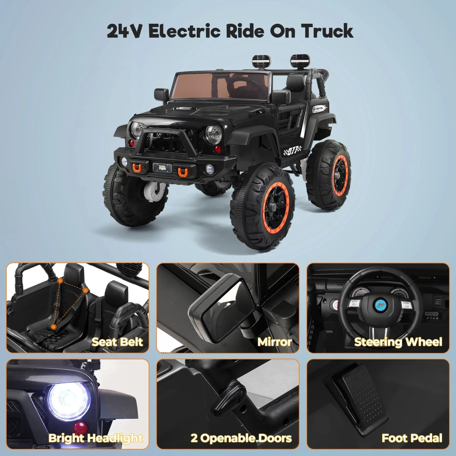 Gear Up for Adventure with the 24V 2-Seater Ride-On Truck – Packed with Dual control modes, Realistic design, Parent Remote Control, and Rugged durability for Kids Aged 3 to 8.