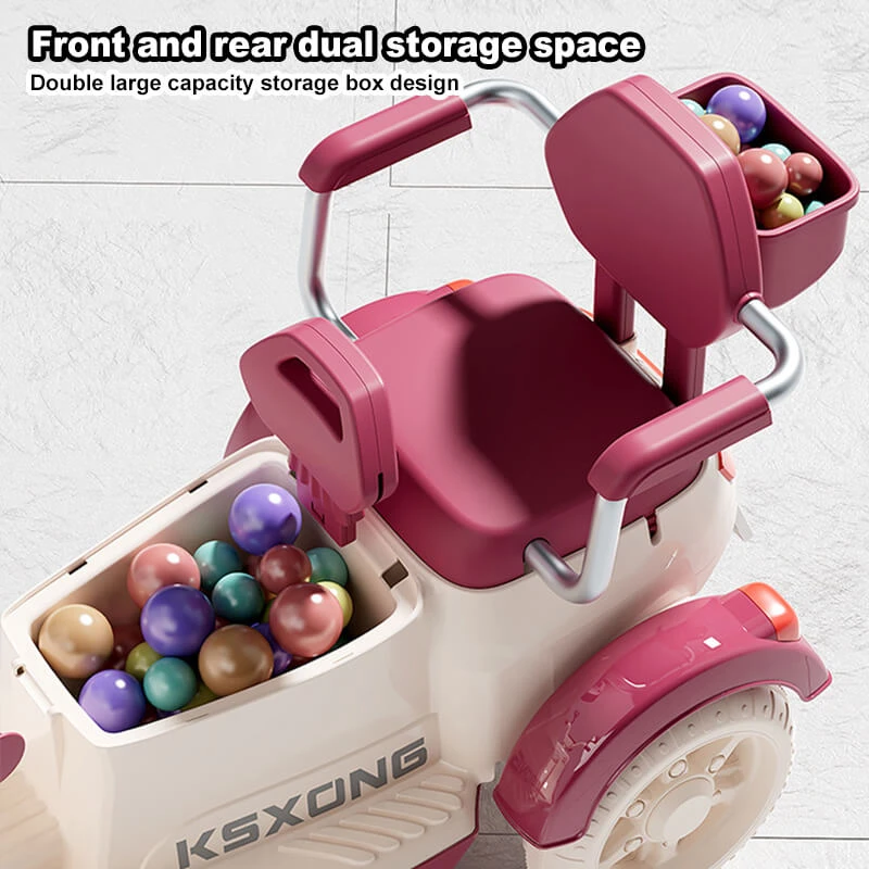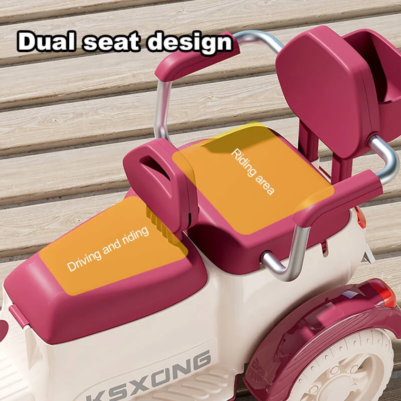 Double Seat & 3-Wheel Stability: The dual-seat design lets kids enjoy playtime with a friend, fostering social interaction and teamwork. Its triangular 3-wheel structure ensures superior balance and stability, even during sharp turns or uneven terrain.