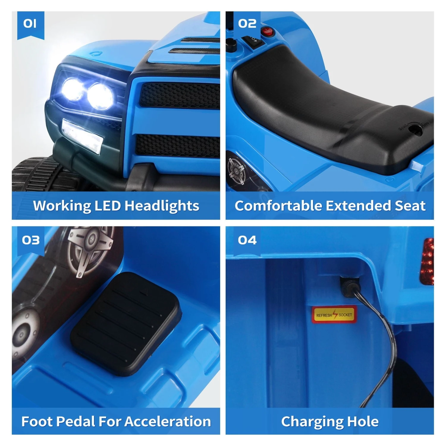 6V Kids Ride-on ATV Car 4 Wheels Battery Powered Ride-On Toy With Light for Children.