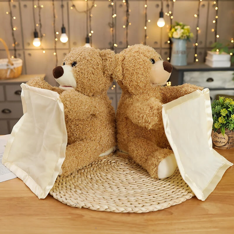 If you are busying in cooking, washing or tidy up, this Peek-A-Boo Teddy bear could play with toddler and make him/her occupied, so mommy could pay attention to what you‘re doing or relax for a while.