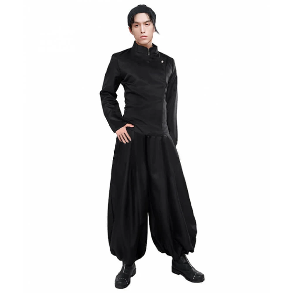 Adult Geto Suguru Costume JJK Black Kimono Pants and Cassock Full Set for Cosplay Party.