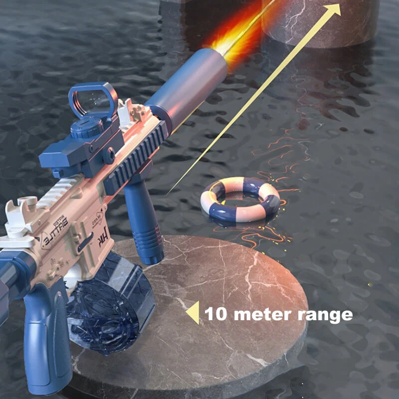 Red Dot Targeting for Precision Play: Equipped with an authentic tactical-style red dot sight, this water blaster enhances aiming accuracy for strategic long-range battles, boasting an impressive 32-foot maximum shooting distance.