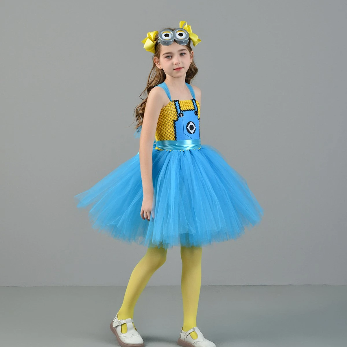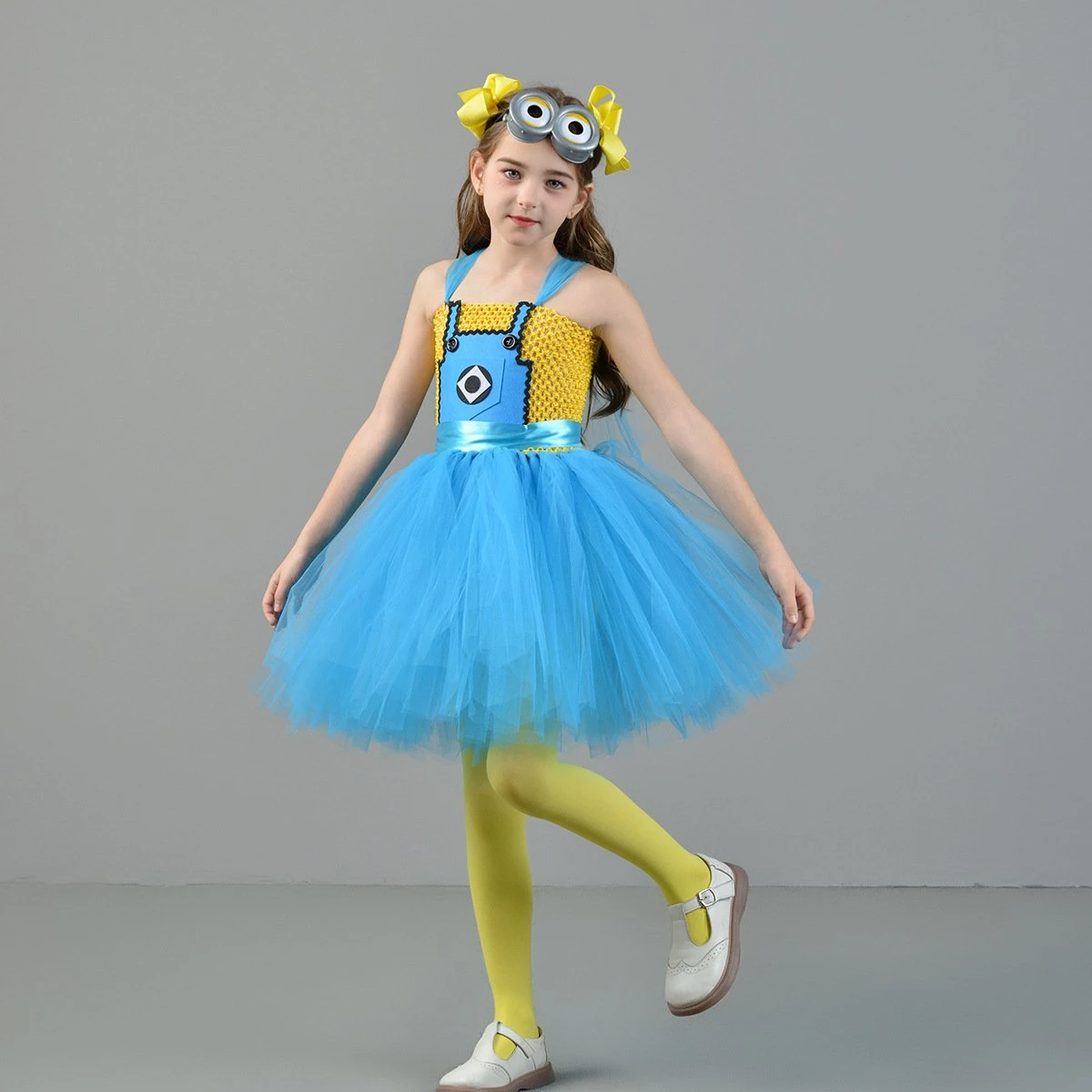 Girls Dress Halloween Cosplay Costume and Goggles Kids Birthday Party Outfit.
