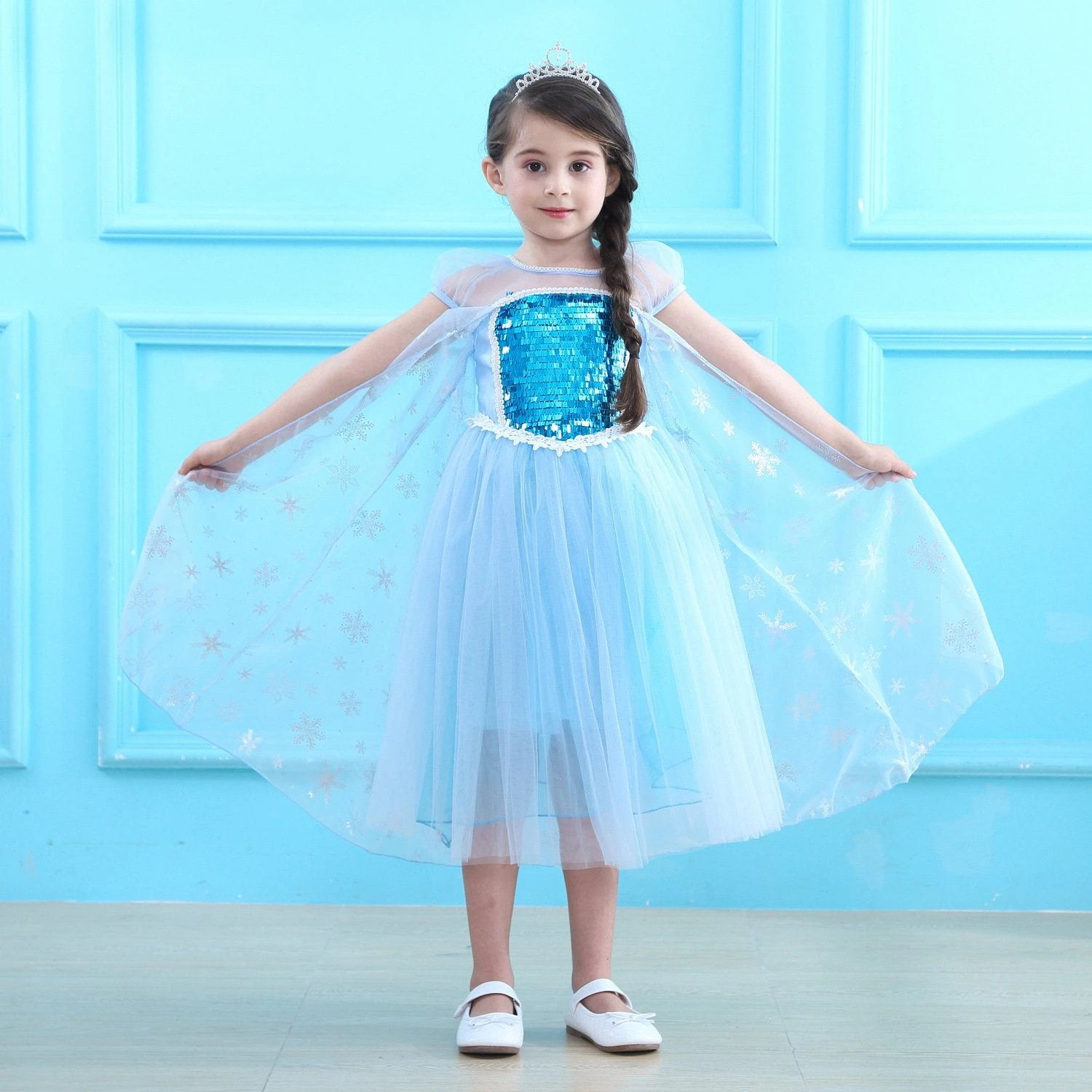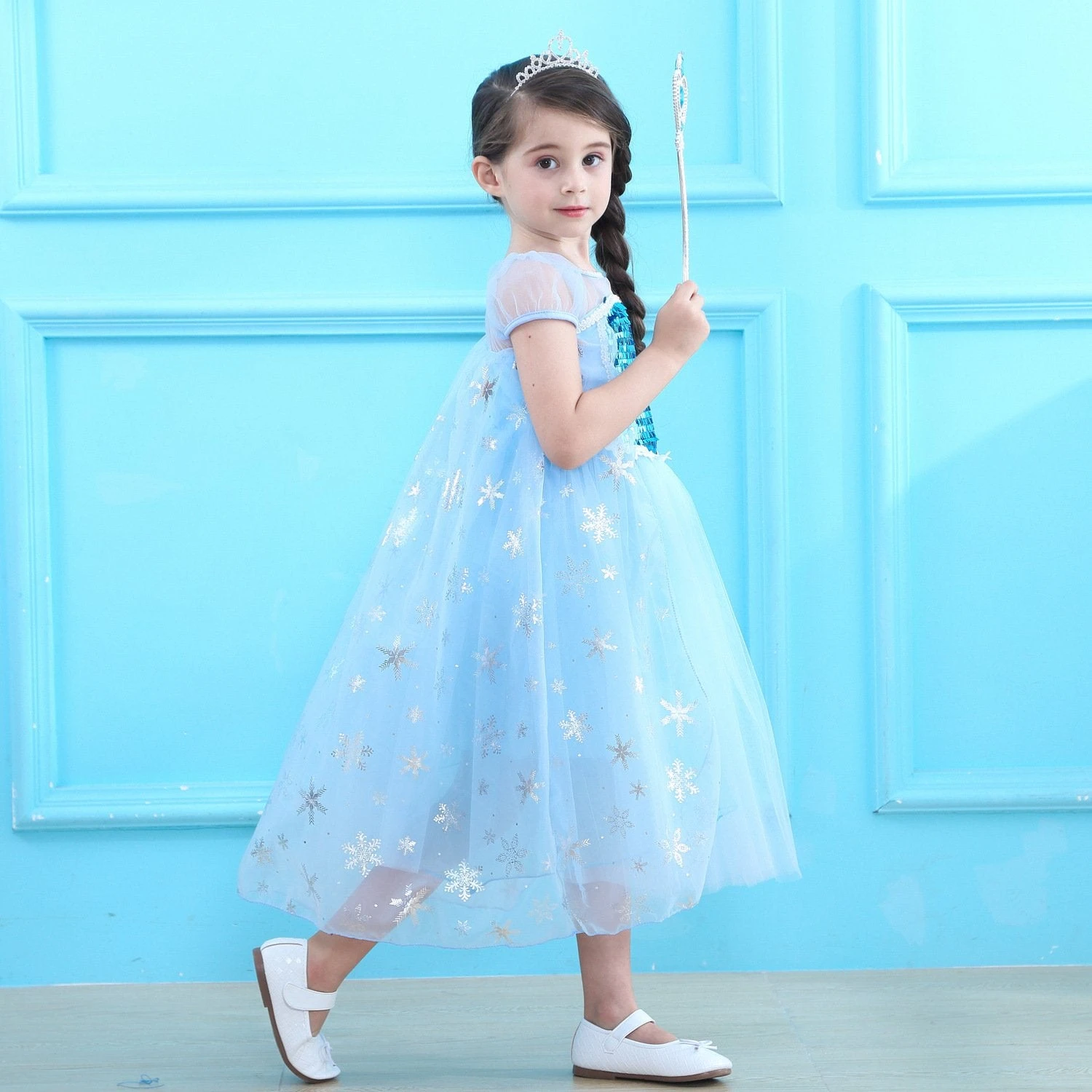 Girls Elsa Dress Summer Blue Snow Queen Birthday Dress Kids Princess Dress Halloween Costumes.