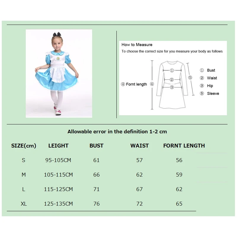 This satin puff sleeve dress features a checkered apron, lace trims, and a skirt, whether you’re looking for an Alice costume for your girl for Hallowen or she landed the part of Alice in a play, this one will be the perfect dress-up for her. Includes hairband with bow( one blue and one black).