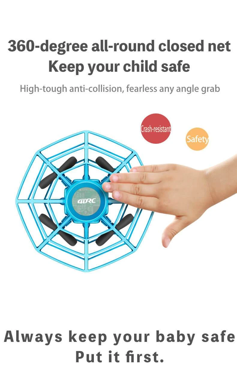 Flexible Shell: The hand operated drone toys is made of non-toxic and high grade ABS material which is lightweight flexible and bendy to withstand countless crashes.