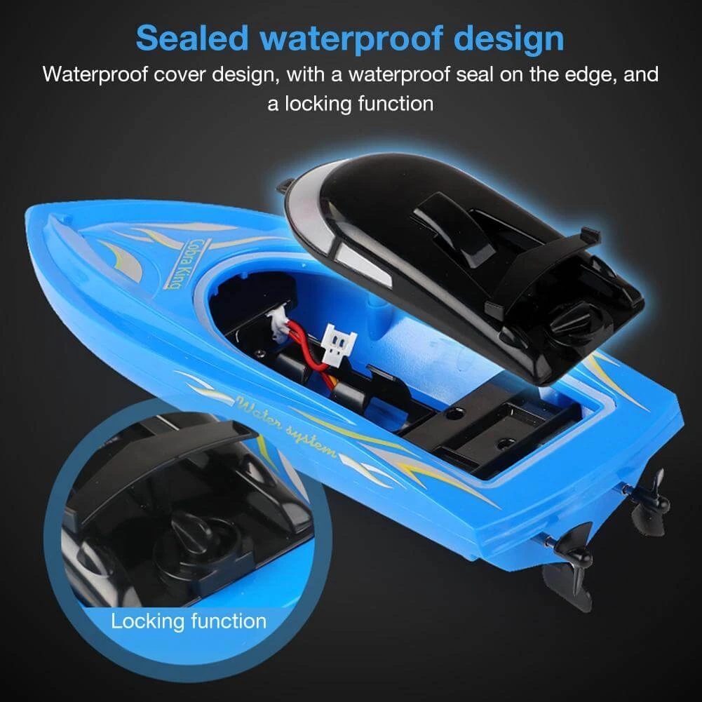 This Kids Remote Control Boat is equipped with a powerful rechargeable 3.7V 650 MAH, we also provide two original boat rechargeable batteries allow the kids to experience a constantly and uninterrupted gaming time.