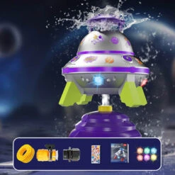 Kids UFO Rocket Sprinkler 360° Rotating Summer Water Pressure Lift Sprinkler Outdoor Water Toy